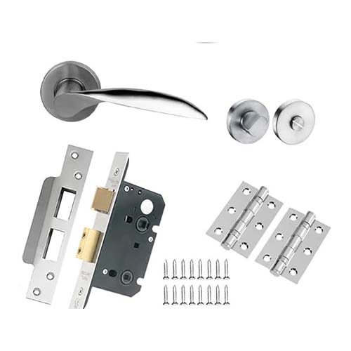 Lever On Round Rose Solid in Satin Stainless Steel Finish & Lever 130 x 55 – Rose 52 x 8 MM Door Handle (Pack) is a Premium Hardware & Residential and Commercial Doors.