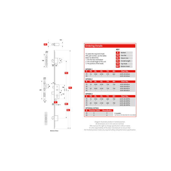 2 Hook Euro Cylinder Multi Point Door Lock – Standard Hook