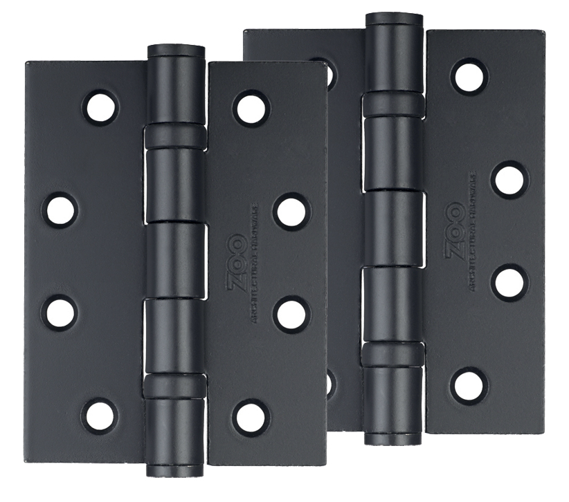 4 Inch Steel Ball Bearing Door Hinges, Powder Coated Black (sold in pairs)