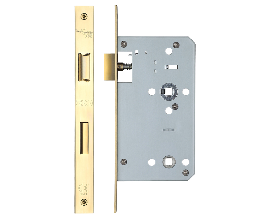 78mm c/c DIN Bathroom Lock (Square Profile), PVD Stainless Brass