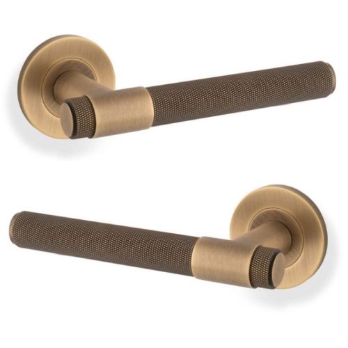 The Alexander and Wilks Kingston knurled lever door handle on the rose features a modern diamond-cut knurled pattern, against a round silhouette, finished with a plain round rose. This contemporary lever door handle marries round and cylindrical shapes, creating a bold yet uncomplicated statement. This luxurious lever handle finishes off a contemporary design theme beautifully and creates a high-end look for the home. Originating from industrial settings, knurled hardware is aesthetically ultra-modern but also offers a number of practical features including tactile easy grip and resistance to wear and tear.