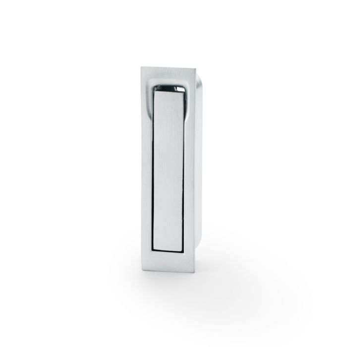 This Alexander and Wilks Square Sliding Door Edge Pull has a flush-fitting meaning it will be well hidden in your doors. It is fixed with two screws in the back. Also available in a radius version here.