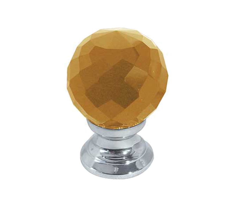 Amber Coloured Faceted Glass Cupboard Door Knob, Polished Chrome