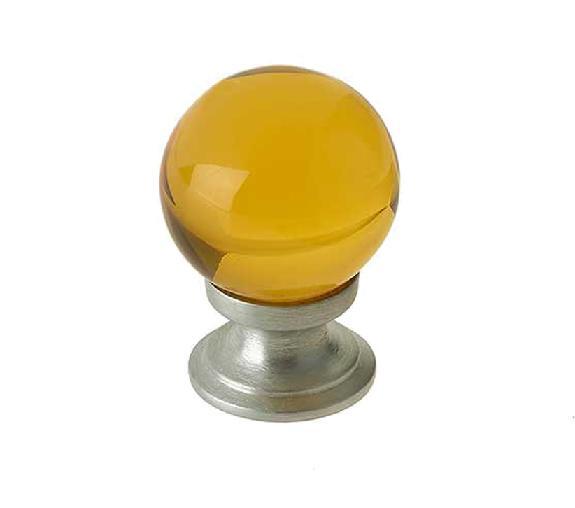Amber Coloured Plain Ball Glass Cupboard Door Knob, Satin Chrome