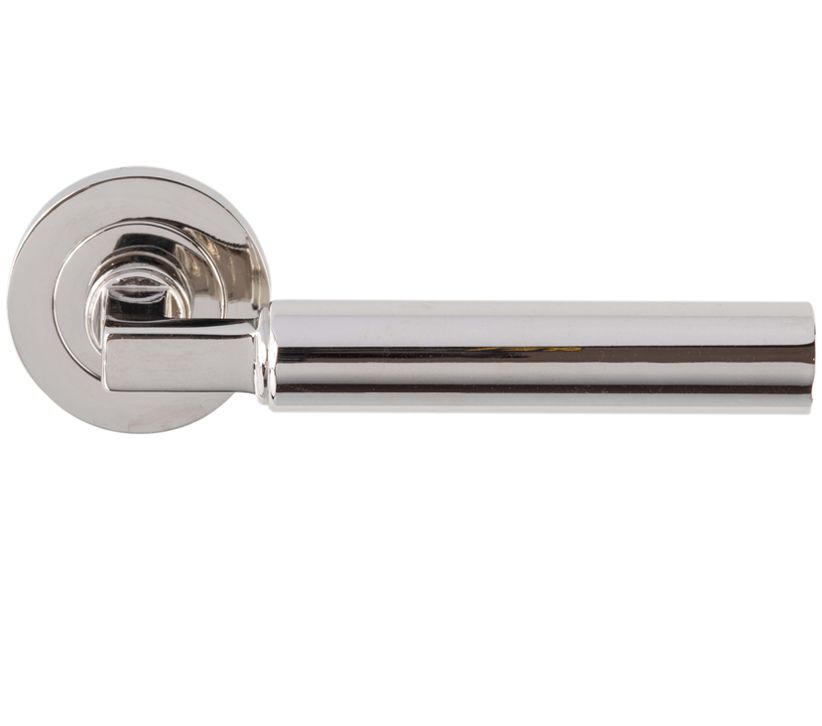 Amiata Door Handles On Round Rose, Polished Nickel (sold in pairs)