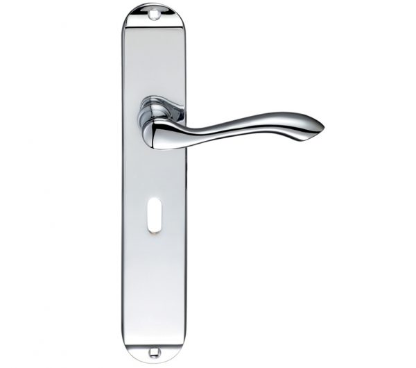 Arundel Door Handles On Long Backplate, Polished Chrome (sold in pairs)