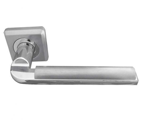 Athena Door Handles On Square Rose, Dual Finish Polished Chrome & Satin Chrome (sold in pairs)