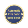 Automatic Fire Door Keep Clear (75mm Diameter), Polished Brass