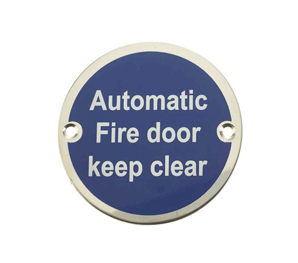 Automatic Fire Door Keep Clear (75mm Diameter), Polished Stainless Steel