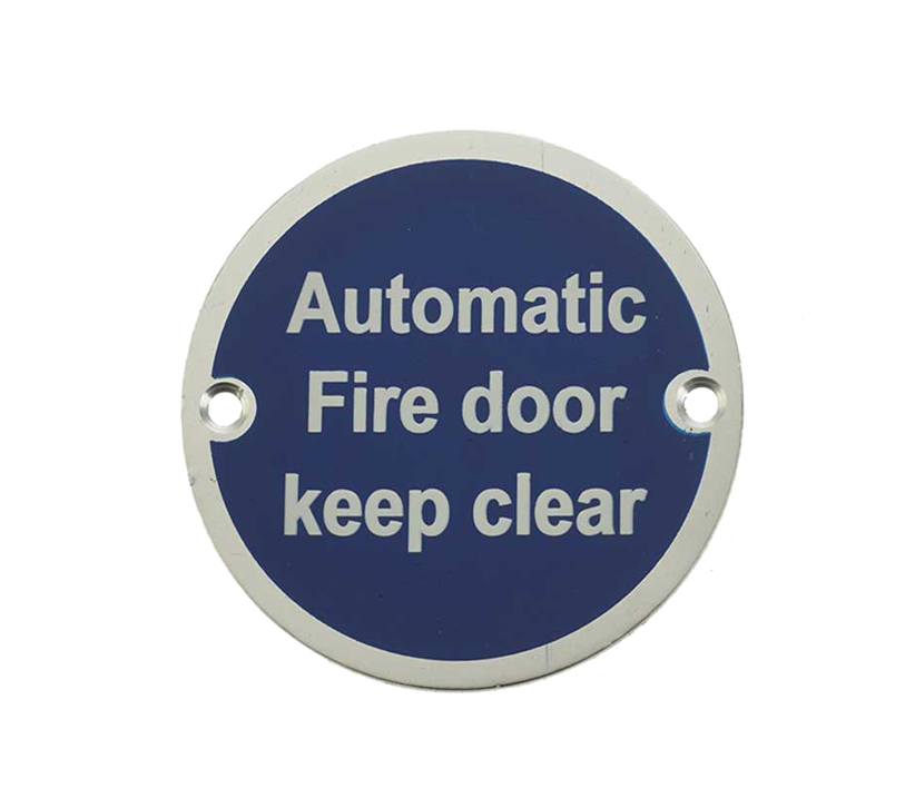 Automatic Fire Door Keep Clear (75mm Diameter), Satin Aluminium