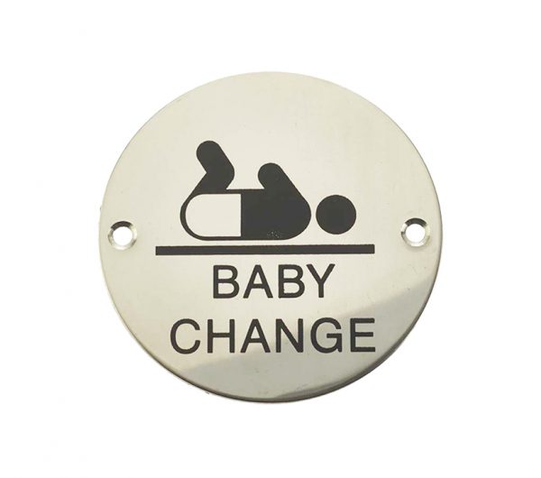 Baby Change Pictogram Sign (75mm Diameter), Polished Stainless Steel
