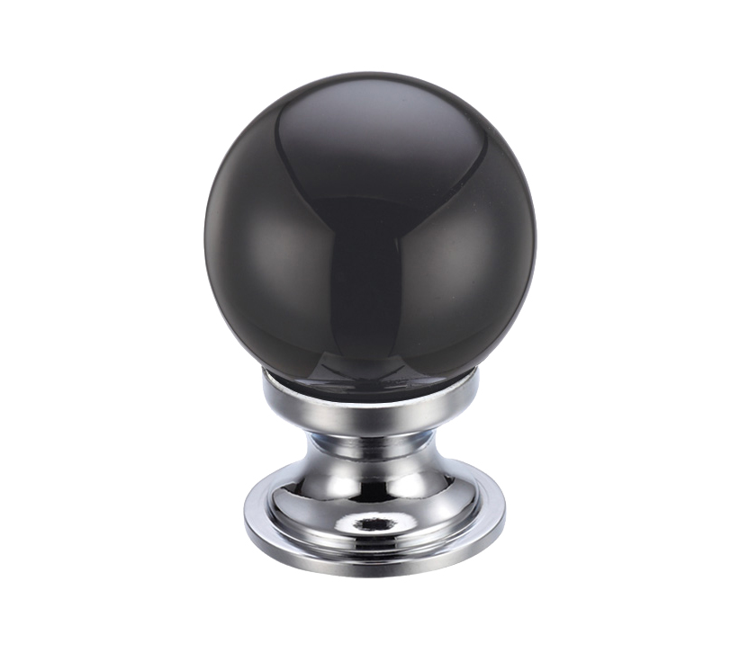 Black Glass Ball Cupboard Knobs (25mm Or 30mm), Polished Chrome Base