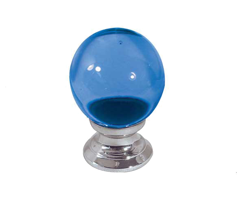 Blue Coloured Plain Ball Glass Cupboard Door Knob, Polished Chrome