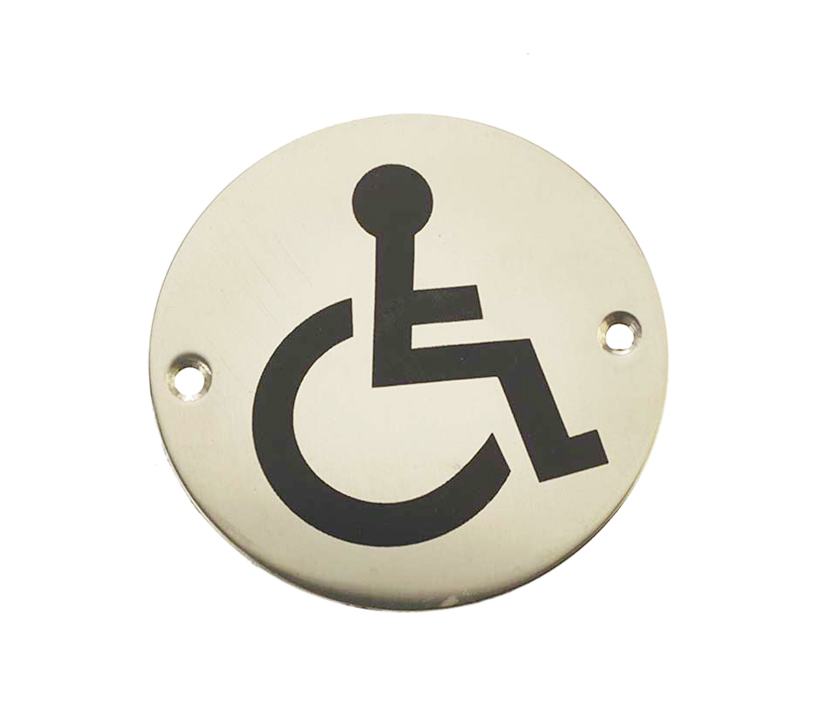 Disability Pictogram Sign (75mm Diameter), Polished Stainless Steel