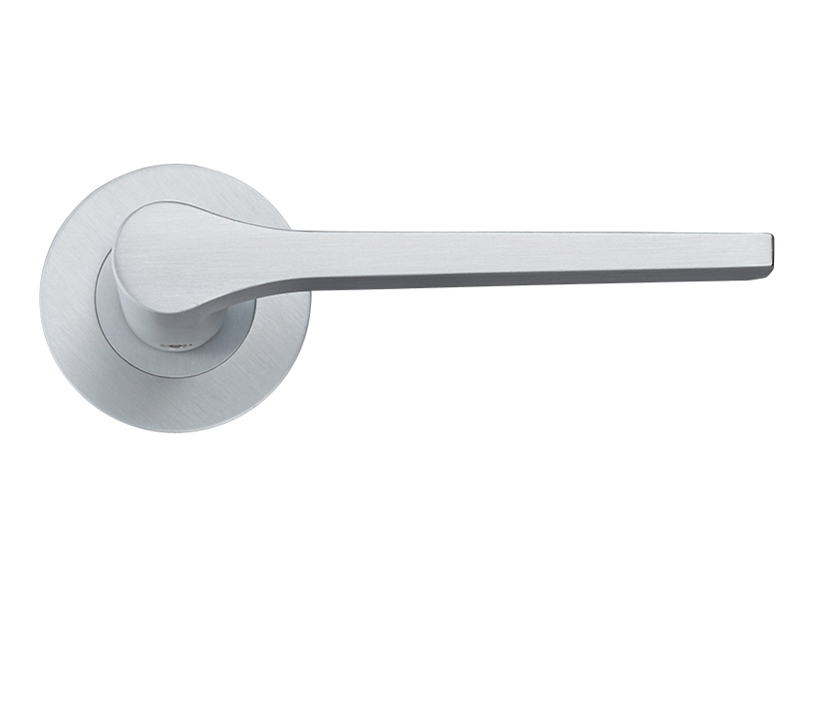 Draco Lever On Round Rose, Satin Chrome (sold in pairs)