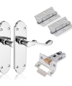 EuroartLuxury Lever Door Handles Back Plate-Lever Latch Door Pack, Door Latch Handle, Ball Bearing Hinges, Tubular Latch in SCP Finish & Complete Set