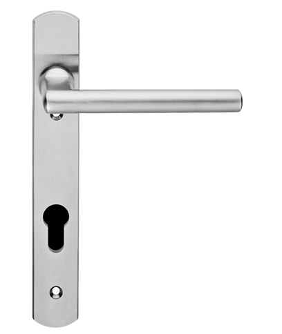 Eurospec Designer Straight Lever Narrow Plate, 92mm c/c, Euro Lock, Stainless Steel Door Handles (sold in pairs)