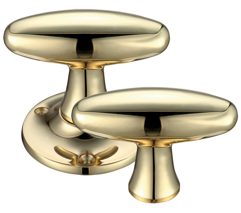 Extended Oval Rim Door Knobs, Polished Brass (sold in pairs)