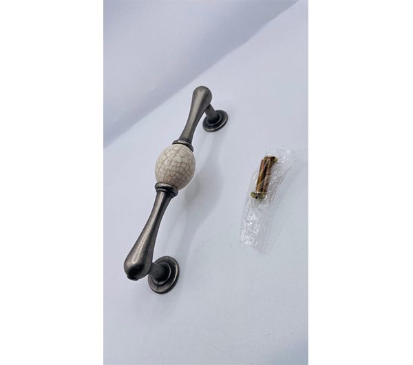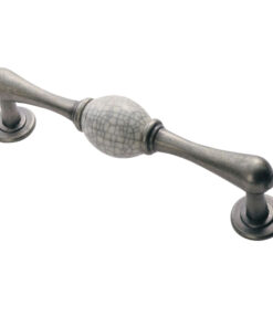 Fingertip Crackle Glaze Porcelain Cabinet Pull Handle (128mm C/C), Antique Brass With Ivory Crackle