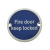 Fire Door Keep Locked Sign (75mm Diameter), Satin Aluminium
