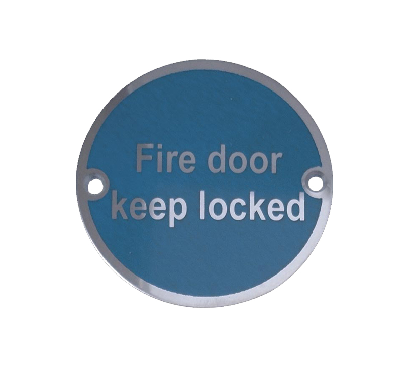 Fire Door Keep Locked Sign (75mm Diameter), Satin Stainless Steel