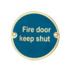 Fire Door Keep Shut Sign (75mm Diameter), Polished Brass