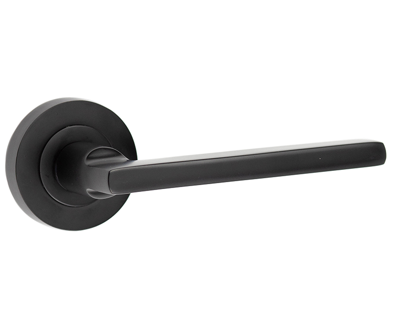 Frelan Hardware Jet Door Handles On Round Rose, Matt Black – JMB600 (sold in pairs)