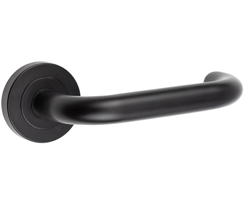 Frelan Hardware Orbit Door Handles On Round Rose, Matt Black – JMB13 (sold in pairs)