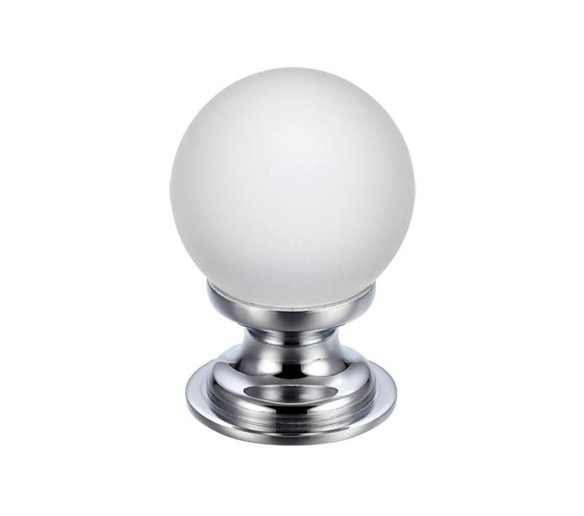 Frosted Glass Ball Cupboard Knobs (25mm Or 30mm), Polished Chrome Base