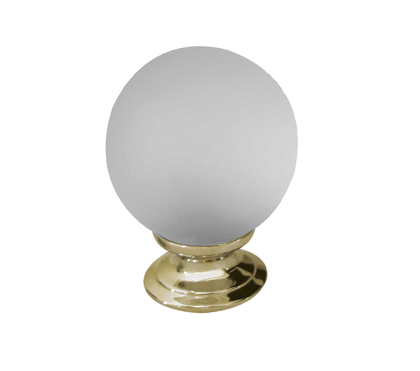 Frosted Glass Cupboard Door Knob, Polished Brass
