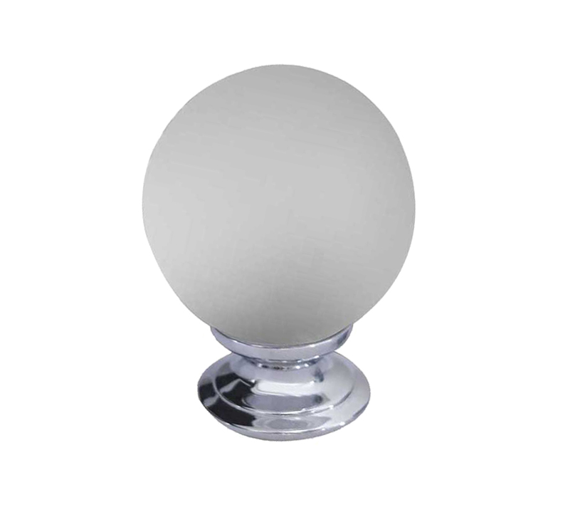 Frosted Glass Cupboard Door Knob, Polished Chrome