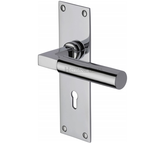 Heritage Brass Bauhaus Low Profile Door Handles On Backplate, Polished Chrome (sold in pairs)