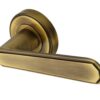 Heritage Brass Century Art Deco Style Door Handles On Round Rose, Antique Brass (sold in pairs)
