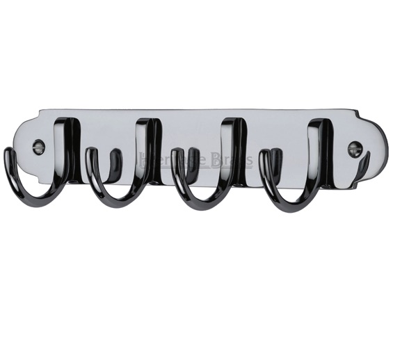 Heritage Brass Coat Hooks On Plate (223mm Width), Polished Chrome