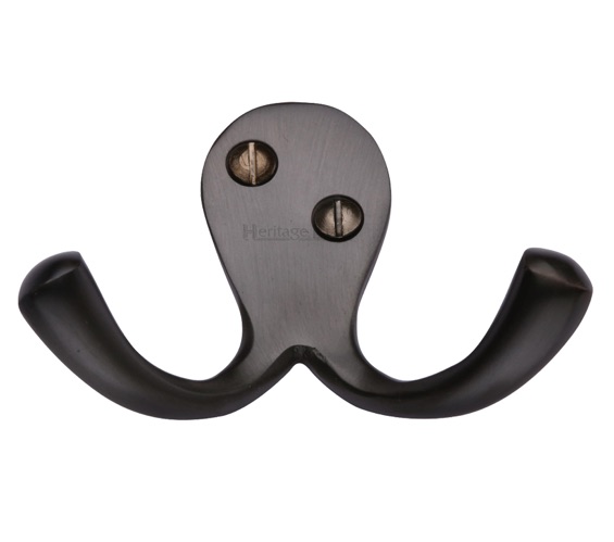 Heritage Brass Double Robe Hook (64mm Width), Matt Bronze