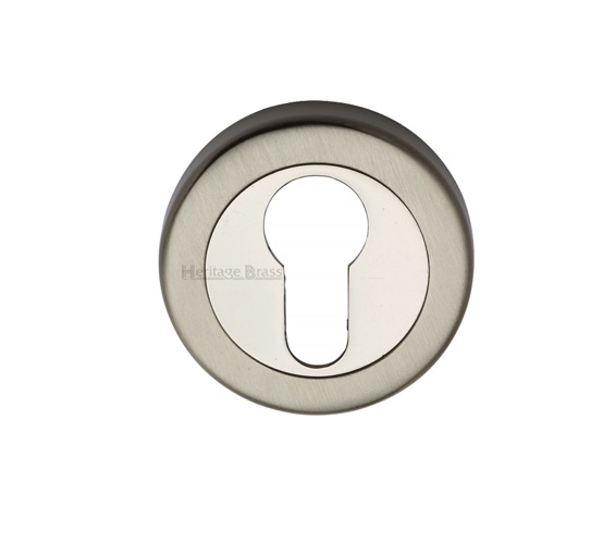 Heritage Brass Euro Profile Key Escutcheon, Mercury Finish Satin Nickel With Polished Nickel