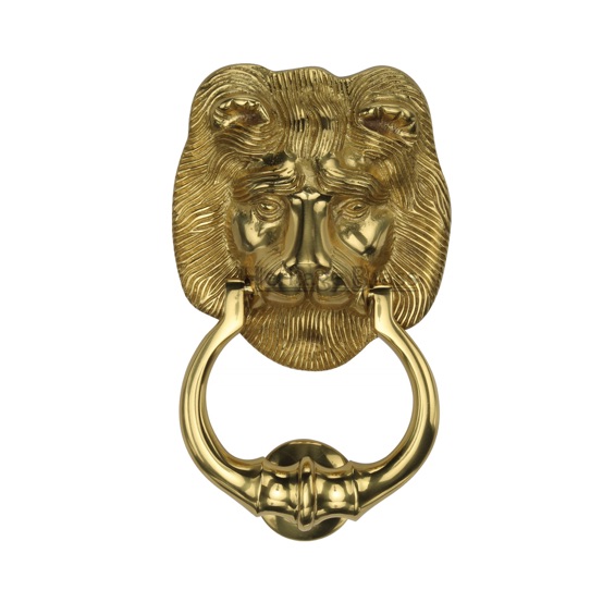 Heritage Brass Lion Head Door Knocker, Polished Brass