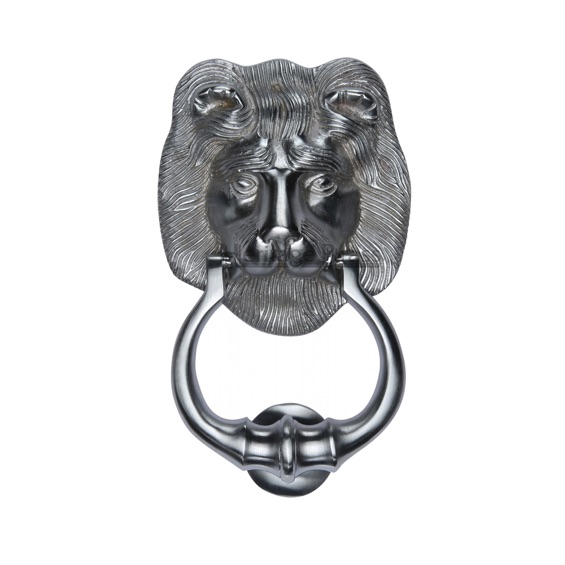 Heritage Brass Lion Head Door Knocker, Satin Chrome