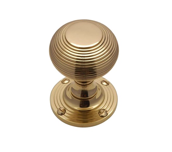 Heritage Brass Reeded Mortice Door Knobs, Polished Brass (sold in pairs)