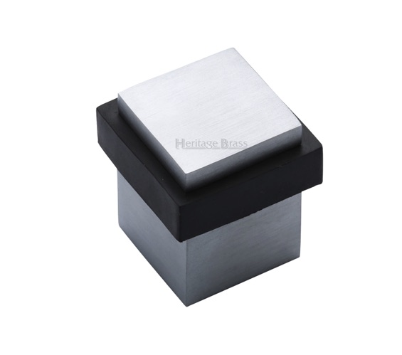 Heritage Brass Square Floor Mounted Door Stop (30mm x 30mm), Satin Chrome