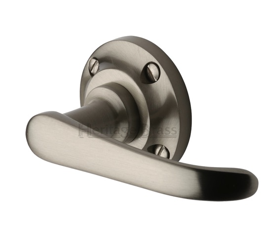 Heritage Brass Windsor Door Handles On Round Rose, Satin Nickel (sold in pairs)