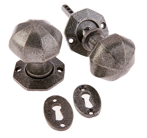 Jedo Collection Valley Forge Octagonal Mortice Door Knob (68mm x 60mm), Pewter Patina (Sold In Pairs)