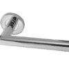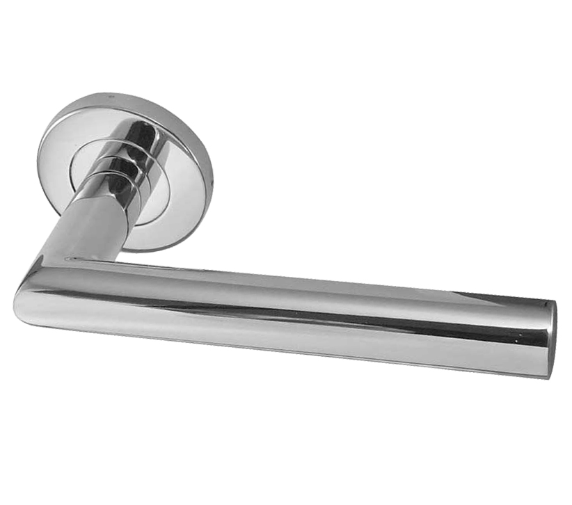 Julian Door Handles On Round Rose, Polished Stainless Steel (sold in pairs)