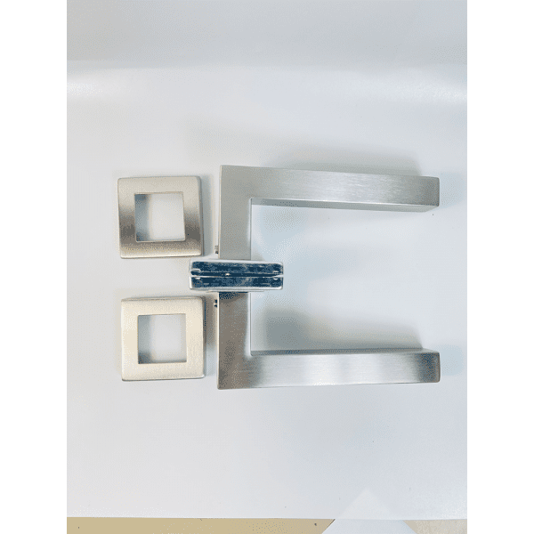 Lever on Square Rose Door Handle – 135mm x 52mm in Satin Stainless Steel Finish