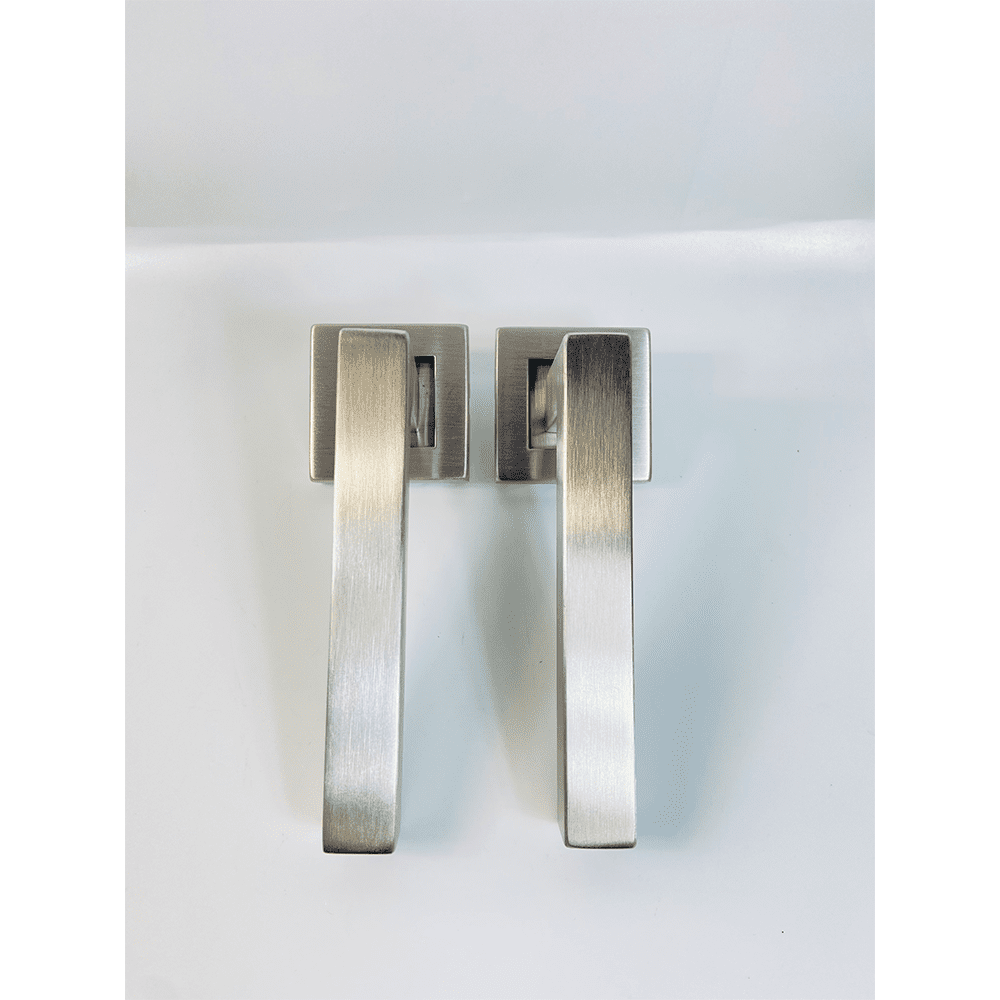 Lever on Square Rose Door Handle – 135mm x 52mm in Satin Stainless Steel Finish