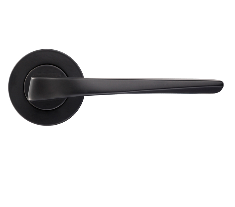 Lyra Lever On Round Rose, Powder Coated Black (sold in pairs)