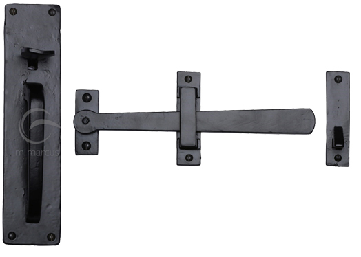 M Marcus Gate Latch & Handle On Backplate (221mm Length), Smooth Black Iron
