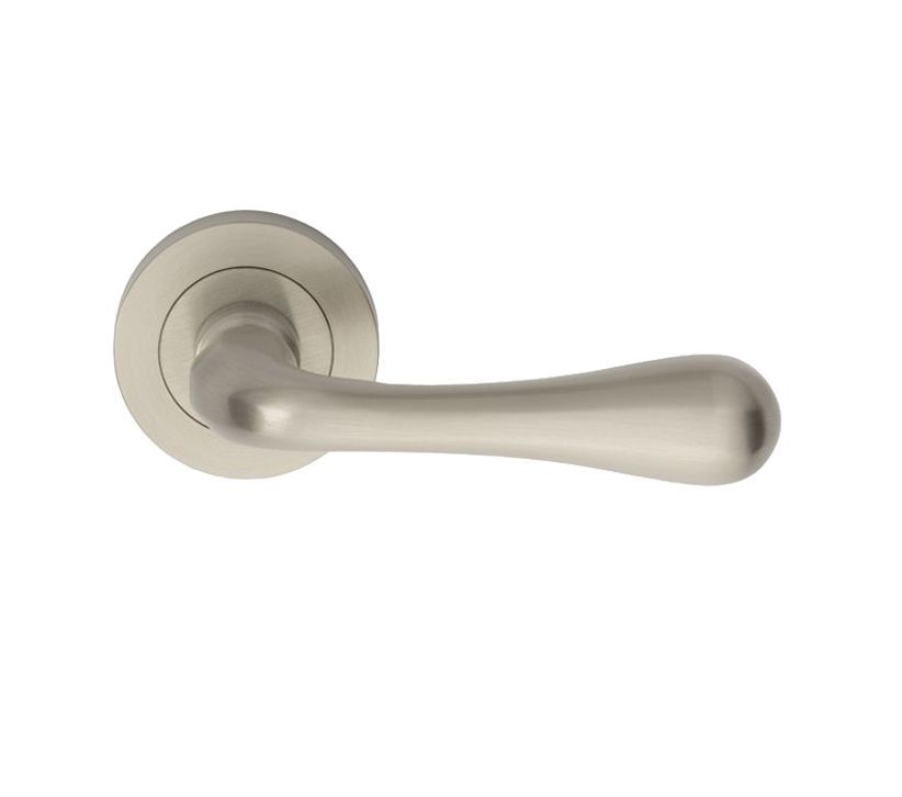 Manital Stella Door Handles On Round Rose, Satin Nickel (sold in pairs)