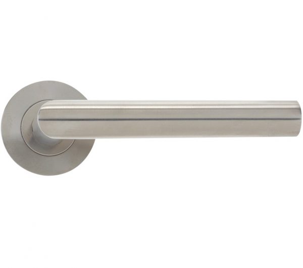 Mitred Lever On Round Rose, Satin Stainless Steel (sold in pairs)