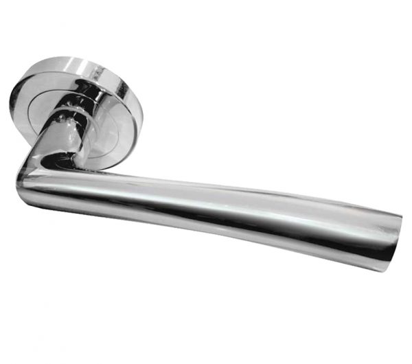 Opal Door Handles On Round Rose, Polished Chrome (sold in pairs)